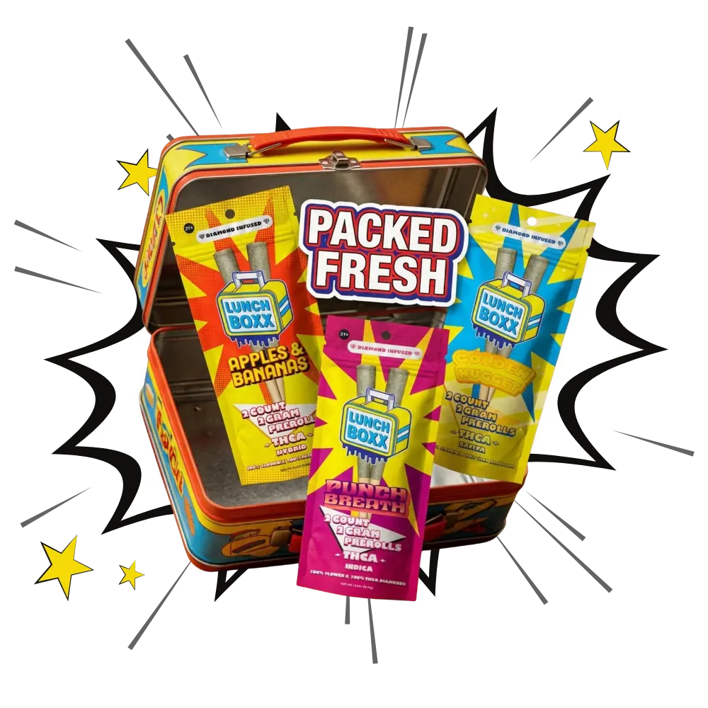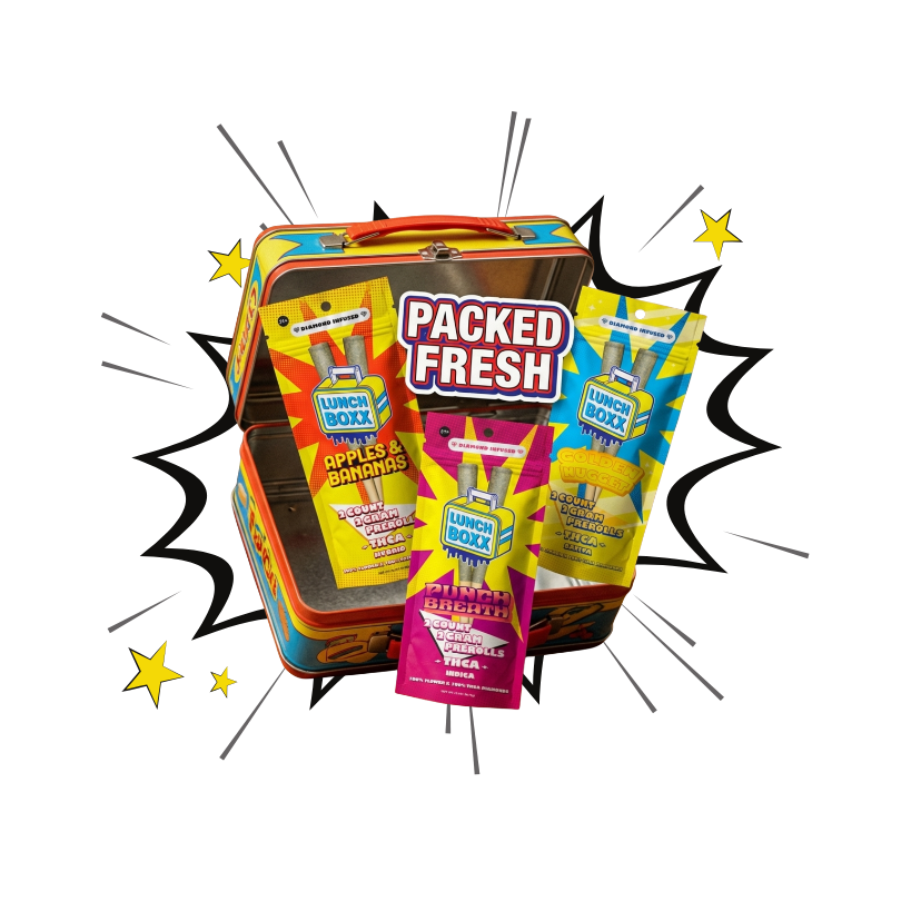 Each LunchBoxx pack contains 4 grams total with two 2-gram pre rolls packed with premium indoor-grown THCA flower.